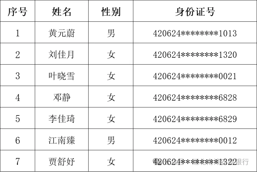 现将南漳农商行2025年新员工社会招录预录人员情况予以公示。预录人员名单: